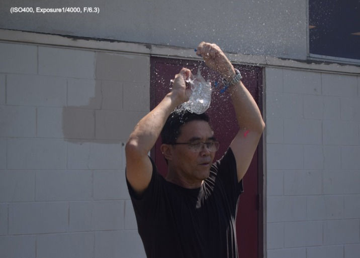 Here are some photos I've taken this year when my class was practicing with shutter speeds. The first photo, we kept one person still in the middle with a couple people walking up and down in the background. We used a slow shutter speed to capture the people walking by in a blur. The second photo, is my photography teacher, Mr. Phun, popping a water balloon on his head. We used a high shutter speed to capture the water sharply falling onto his head.